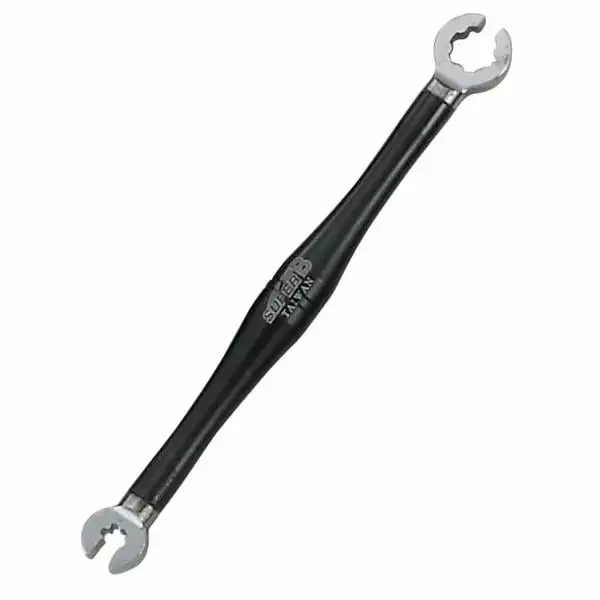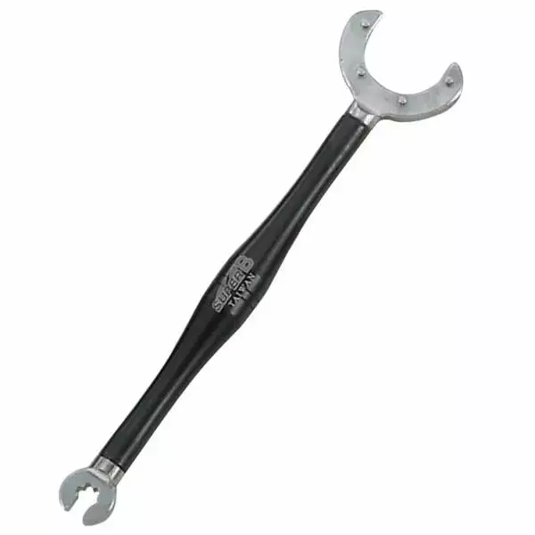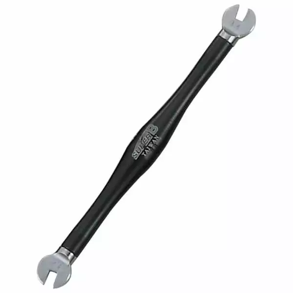 Autorisant une bonne prise en main grâce à manche confortable, cette clé double SUPER B est proposée en plusieurs dimensions en fonction de la taille de la tête de rayon.