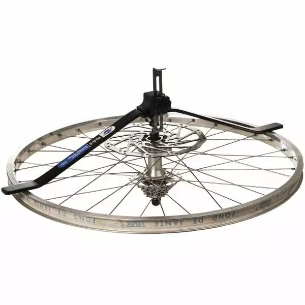 Le comparateur d’alignement de roues PARK TOOL WAG-5 permet de vérifier le déport correct des roues de 24 à 29 pouces.