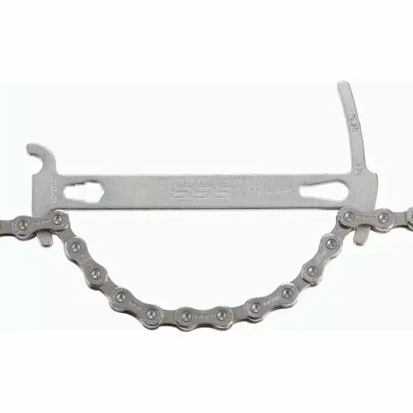 Cet outil dispose d’un contrôle d’usure de 75% à 100%. De plus, il est équipé de 2 crochets pour maintenir la chaîne libre lors d’un changement de maillon, d’un outil pour démonter une valve et des clés hexagonales de 5/6 et 8 mm.