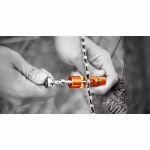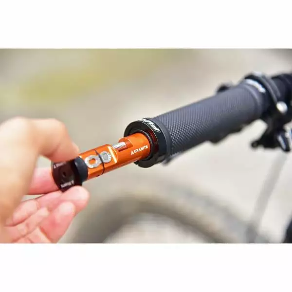 Il s’installe directement dans le cintre avec un système ingénieux d’expandeur vissé compatible avec les poignées de type Lock-On ou les poignées avec l’extrémité ouverte grâce aux 2 tailles de capots. Conçu avec un aluminum 7075 usiné CNC, il offre une très bonne qualité et belle finition. Il offre une plage d’utilisation large pour les chaînes de 9 à 12 vitesses et il permet l’installation d’un maillon rapide sur les extrémités.