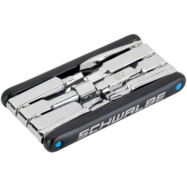 Il est fabriqué sur une base aluminium de haute qualité pour une grande durabilité. Ce modèle comporte 7 clés Allen, 1 clé torx, 1 tournevis plat, et un ouvre-bouteille. De plus, les outils sont fixés sur la base avec deux boulons hexagonaux pour éviter le desserrage.