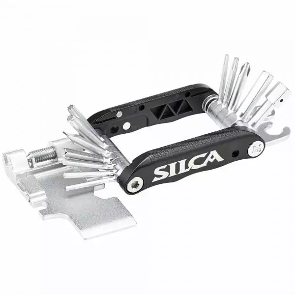 Le coffret en boit permet de ranger toutes les clés. Ultra-compact il possède des clés Allen, des clés Torx, des tournevis, outil pour repousser les plaquettes de freins, une pince, un dérive chaine ainsi que d’autres outils. Il est conçu en acier inoxydable afin d’avoir une très bonne durée de vie. Les différents outils peuvent s’utiliser dans tous les sens afin d’avoir la meilleure prise en main possible.