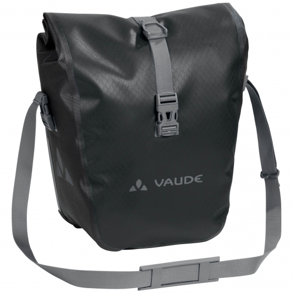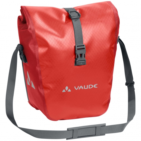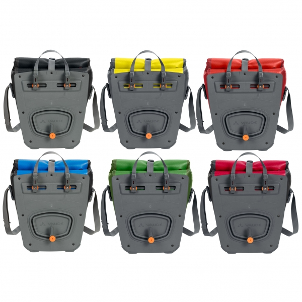 Fixée sur un porte-bagages avant, la paire de sacoches VAUDE Aqua offre le moyen au cycliste de ranger sans souci ses affaires lorsqu’il voyage à vélo ! Comme tous les produits de la marque allemande, ces sacoches bénéficient d’une conception vertueuse qui élimine du processus de fabrication les substances potentiellement nocives pour la santé ou l’environnement.