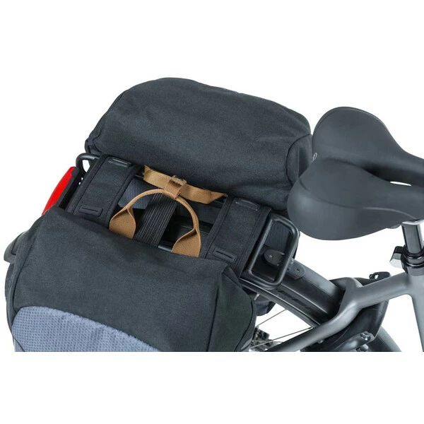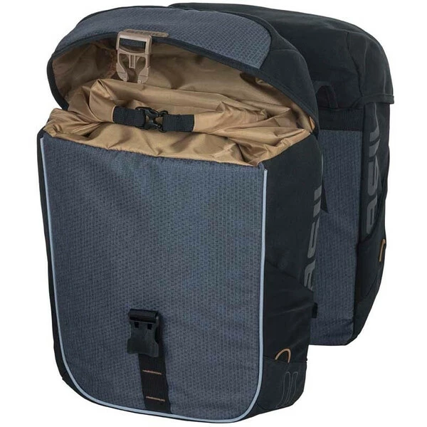 Grâce à son important compartiment principal et sa fermeture enroulable, la sacoche transportera vos effets personnels en toute sécurité. Elle rendra heureux les vélotafeurs à la vie active bien remplie ! Les 34 litres seront ainsi merveilleusement utilisés. Ergonomique, le système d’attache Basil Universal Bridge offre une fixation fiable et rapide sur le porte-bagages.