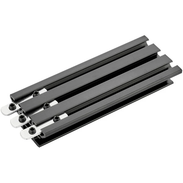 Fait de la même matière que le rail du pied d’atelier, il se fixe à l’aide de deux plaques et quatre vis à tête creuse pour accueillir de façon sécurisante les vélos ayant une longueur entre le boîtier de pédalier et l’axe de la roue avant égal ou supérieur à 73 cm. Tel que les modèles Cyclocross, Gravel ou Enduro.