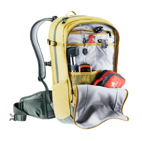 Les fonctionnalités nombreuses rendront ce sac très pratique, avec en tête une grande poche frontale organisée, le Label SOS fournissant les instructions nécessaires en cas d’urgence, un porte-casque escamotable, une housse anti-pluie, poches externes filet…