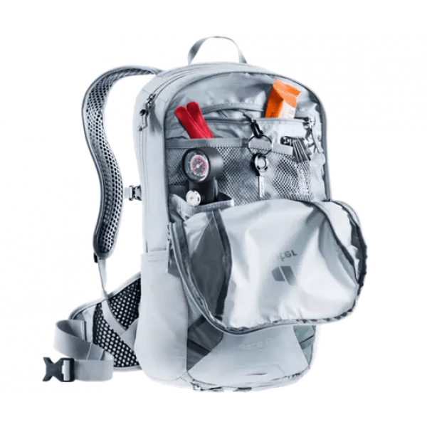 Outre ses nombreux rangements, ce sac d’un volume de 10 litres se caractérise par un très grand confort grâce au panneau dorsal Aircomfort Flexlite. Ce système garantit une aération maximale en créant un espace de ventilation entre le sac à dos et le dos de manière fiable afin que l’air humide puisse s’évacuer sans obstruction. Avec l’aération breveté Deuter sur trois côtés, le porteur produit ainsi jusqu’à 25 % de transpiration en moins. De plus, le cadre de profil rond confère au filet de dos une tension durablement stable procurant à la fois une grande liberté de mouvements et une sensation de légèreté.