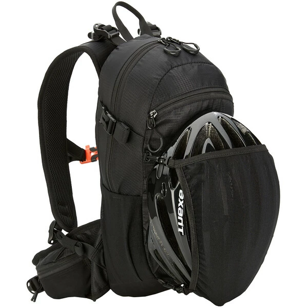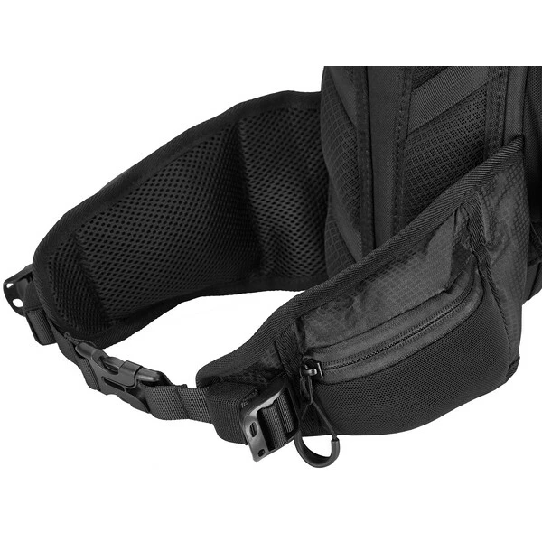 Le panneau dorsal muni de canaux est extrêmement bien ventilé, les bretelles sont ergonomiques, le tout offrant un contact minimum en assurant pourtant un maintien sûr et confortable grâce à sa double ceinture. Ce sac est également fonctionnel permettant de mettre idéalement à profit sa capacité de 12 litres et bien entendu de transporter une outre de 3 litres maximum.