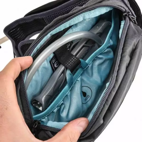 Très pratique à utiliser, elle dispose de nombreux compartiments permettant d’organiser efficacement vos affaires pour accéder facilement et rapidement à vos outils, barres et gels d’hydratation, ainsi que votre téléphone. Cette sacoche également conçue pour un usage simple et pratique, accueille un réservoir d’hydratation de 1,5 litres et un clip magnétique pour le tuyau, permettant d’avoir l’essentiel avec soi lors des sessions rides !