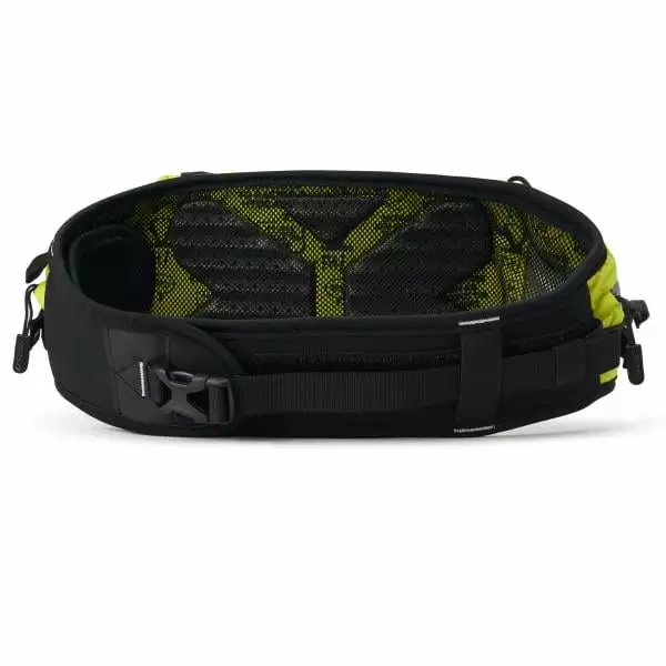 Idéalement positionnée et maintenue à la taille par un panneau ventilé, la sacoche garantit une parfaite liberté de mouvement. Sa sangle réglable permet un bon ajustement personnalisé et évite le balancement.