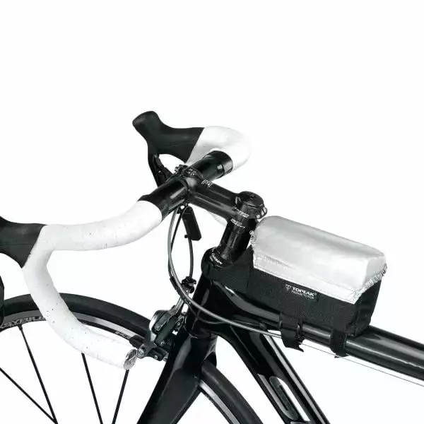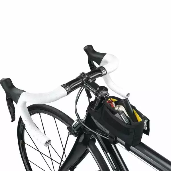 Se fixant simplement et sûrement à l’aide de trois bandes Velcro – deux sur le tube supérieur et une sur la potence, la sacoche de cadre TriBag de TOPEAK est équipée dans cette version d’une housse de pluie protégeant vos affaires quelle que soit la météo.