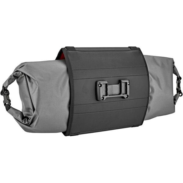 Cette sacoche de guidon est composée de deux parties. D’abord, le support se fixe au guidon à l’aide de sangles. Ensuite, la sacoche va venir se placer dans ce support pour être parfaitement maintenue. Un système quick release permet d’enlever très facilement la sacoche. Elle utilise un tissu parfaitement imperméable afin que les affaires restent bien au sec malgré les intempéries. Elle présent une fermeture enroulable, permettant de moduler le volume suivant ce que l’on transporte.
