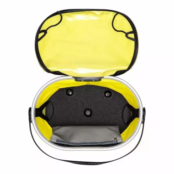 Grâce à un système de renforts intérieurs en aluminium et de patins, la sacoche est stable, indéformable et se tient debout toute seule, pratique pour charger vos courses. Par beau temps, vous pourrez même ranger le couvercle à l’intérieur de la sacoche. Et comme Ortlieb a pensé à tout, un élément réfléchissant améliore votre visibilité et une anse permet de transporter facilement la sacoche à la descente du vélo.