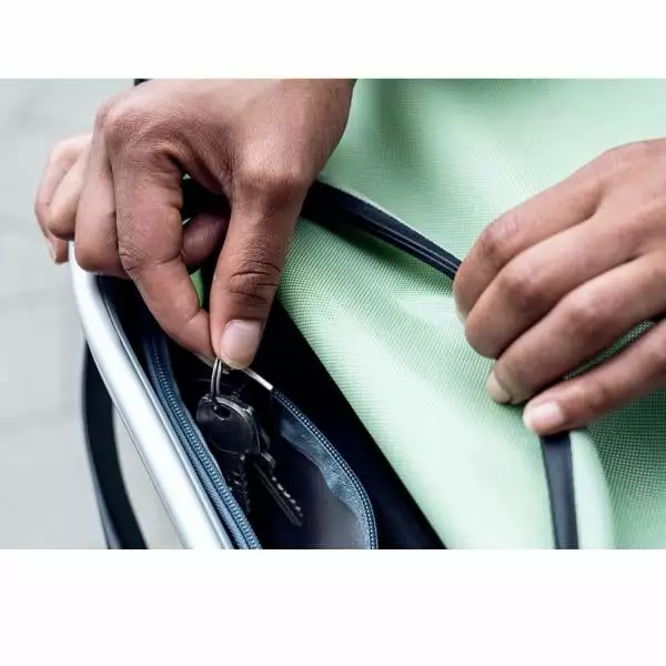 Avec un espace de stockage impressionnant de 17,5 litres et une étanchéité parfaite grâce à son tissu nylon enduit de polyuréthane sans PVC, la sacoche vous permettra de transporter toutes vos affaires au sec et en toute sécurité. Son ergonomie permet de soulever légèrement le couvercle pour récupérer rapidement ses affaires, comme un porte-monnaie. Pour les objets plus sensibles, vous trouverez également un compartiment intérieur zippé.
