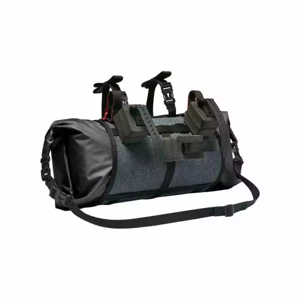 Il se compose d’une sacoche de 13 litres étanche à l’eau avec fermeture à enroulement, pouvant se porter en bandoulière après la sortie. Il se loge dans un système de compression robuste et se fixe à l’aide de deux courroies sur le cintre. Des sangles supplémentaires sur le dessus permettent d’attacher d’autres bagages ou la tente à l’extérieur. Grâce aux fixations ajustables en largeur et aux cales qui maintiennent une distance, vous aurez toujours suffisamment de liberté pour accéder aux freins et aux commandes de vitesses.