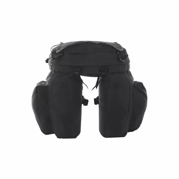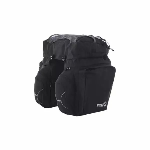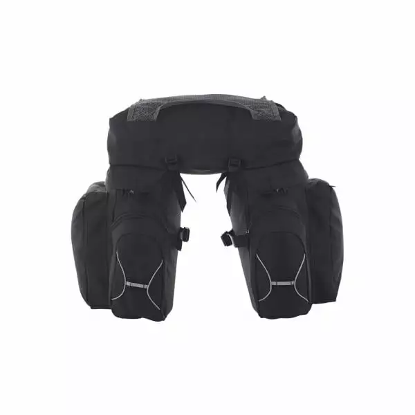 Cet accessoire indispensable en voyage à vélo comprend deux sacoches latérales proposant un volume de rangement de 9,6 litres chacune, et d’un bagage supérieur de 11 litres. Les sacoches latérales disposent de poches extérieures zippées. Sur le dessus, un filet élastique très pratique permet de ranger toutes sortes d’affaires.