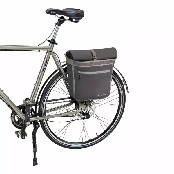 Elle est fabriquée en matières robustes et imperméabilisée avec la finition Eco Finsih. La sacoche cycliste est fixée grâce au système QMR 2.0 et à une plaque stable, à gauche et à droite du porte-bagage arrière.
