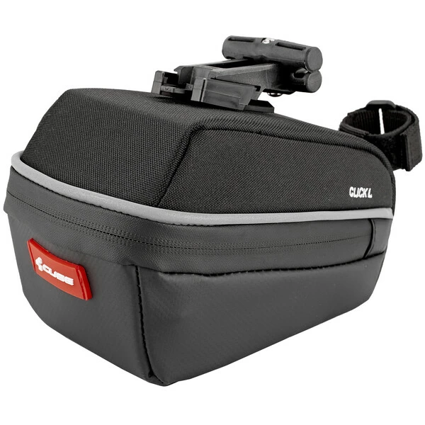 Elle est fournie avec une fixation sur chariot de selle, vous permettant de clipser et déclipser en un geste la sacoche.