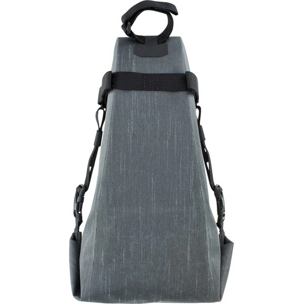 Compatible avec les tiges de selle aéro ou télescopique, la sacoche intègre une structure basse moulée par injection faite de TPE souple pour ne pas endommager la tige de selle. Sur ce modèle, on retrouve un système de serrage par velcro, aussi simple qu’efficace. Des sangles de compression garantissent enfin une ergonomie compacte.