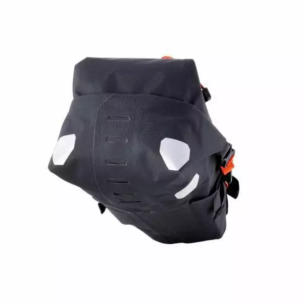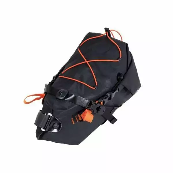 Étanche et spacieuse – avec un volume maximal de 11 litres -, cette sacoche qui se fixe directement à la tige de selle et aux rails de selle est fabriquée en toile nylon enduite de polyuréthane et résistante à l’abrasion avec un fond renforcé, garantissant une robustesse optimale.