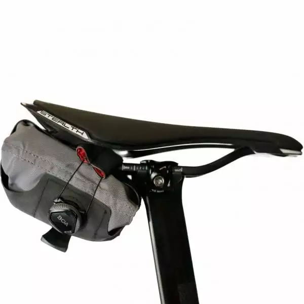 Cette sacoche possède une fixation nouvelle qui se différencie. On y retrouve un combo entre un clip et un système BOA. La sacoche se fixe au niveau des rails de selle. On retrouve quatre compartiments afin d’optimiser le rangement de vos objects. On retrouve des bandes réfléchissantes afin d’augmenter la sécurité lorsque la luminosité baisse.