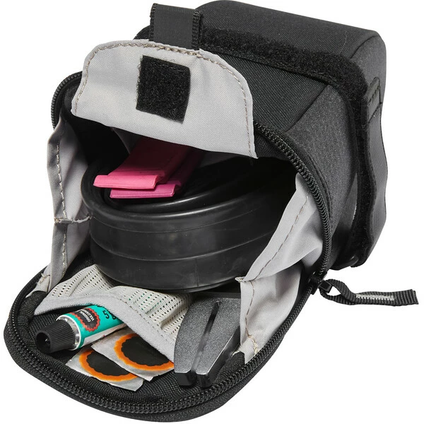 Cette sacoche ultra-légère dispose de deux petites poches intérieures pour ranger l’essentiel de l’équipement lors de vos sorties et se fixe sous la selle à l’aide d’un velcro.