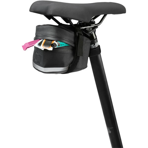 Elle vous permettra d’emmener l’essentiel de votre outillage d’urgence, votre kit de réparation sans excès d’encombrement. Le système de fixation par Velcro est pratique et rapide et la fermeture-éclair du compartiment principal est parfaitement étanche..
