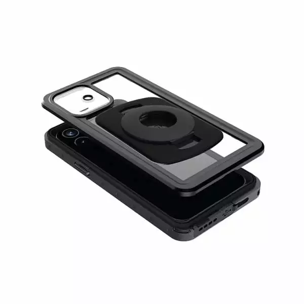 Avec son système de fixation par aimants bien pensé, il vous suffira simplement de rapprocher le téléphone de son support pour le fixer en toute sécurité. La construction composite de la coque en polycarbonate en son centre et revêtue d’une enveloppe thermoplastique souple offre ainsi un bon niveau de protection contre les chocs du quotidien. La coque recouvre les faces latérales et les coins jusque sur la surface antérieure, évitant les rayures lorsque le téléphone est posé côté écran, ainsi qu’un contact direct entre l’écran et le sol en cas de chute.